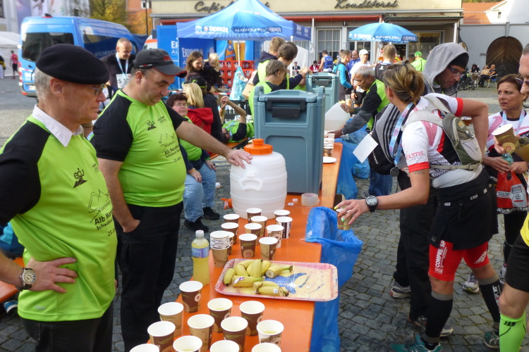 Kurz darauf genieße ich schon mein kühles Zielbier – uuh, das „zischt“ (Erdinger sei Dank). Ja, jetzt kann auch ich mitreden, wenn es um den Albmarathon geht. Und kann eigentlich nur noch einmal bestätigen, was ich eingangs gesagt habe: Der Albmarathon ist etwas Anderes und Besonderes, und das im positiven Sinne. Eine Laufveranstaltung so richtig zum Wohlfühlen, auch wenn einem die 50 km und die drei Berge Einiges abverlangen. Ich komme gerne wieder.