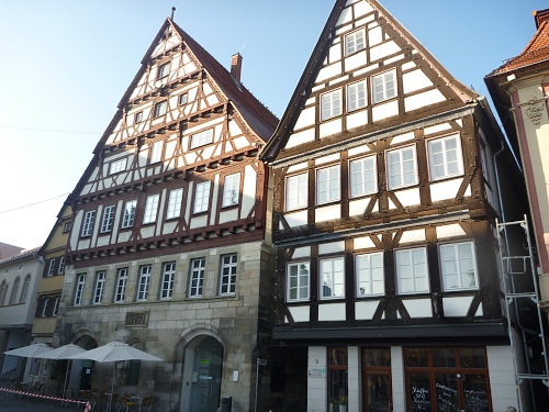 „Knackiger Anstieg“ zum Schloss Wäscherburg, benannt nach dem Ritter „Konrad der Wascher“, der seinen Namen vom Waschbach bei Welzheim hat. Es bestand aber vermutlich schon ein Vorgängebau, weshalb die Legende das Wäscherschloß zur „Wiege der Staufer“ macht. Wieder einmal muss Barbarossa herhalten, der hier eine Wäscherin als Geliebte gehabt haben soll. Das Ortswappen Wäscherbeurens zeigt diese Wäscherin.