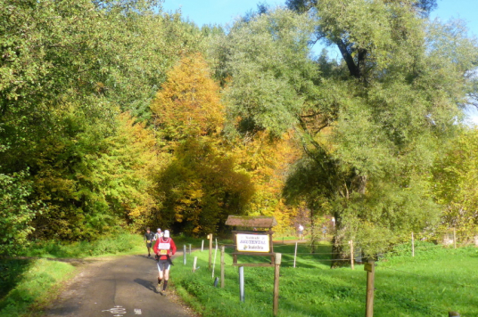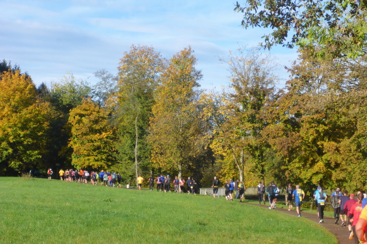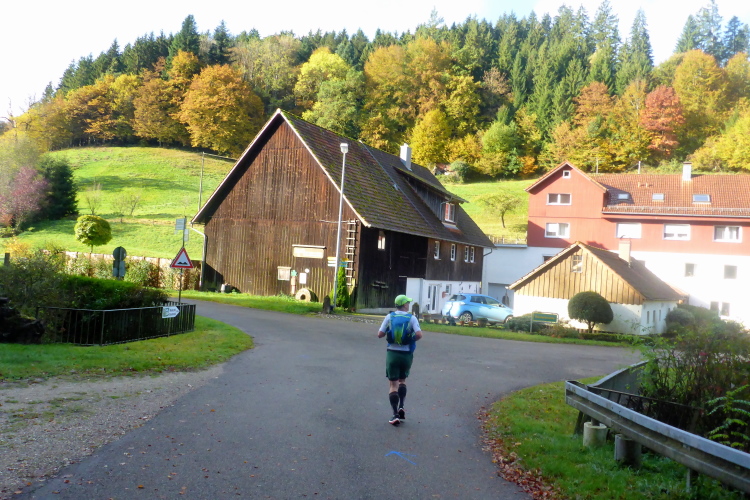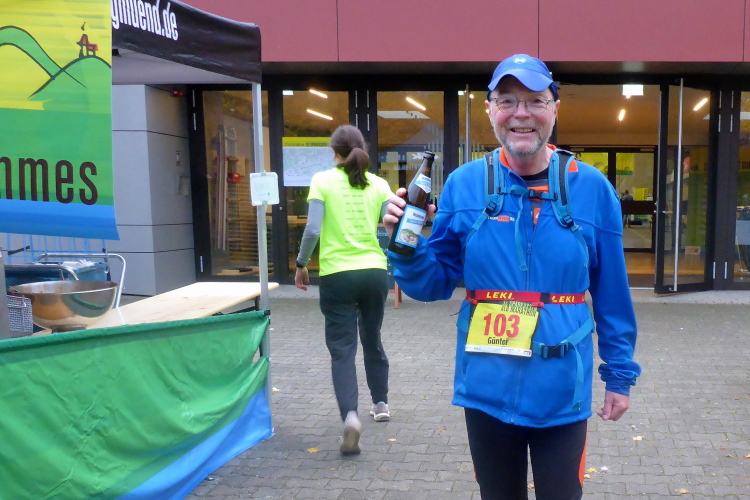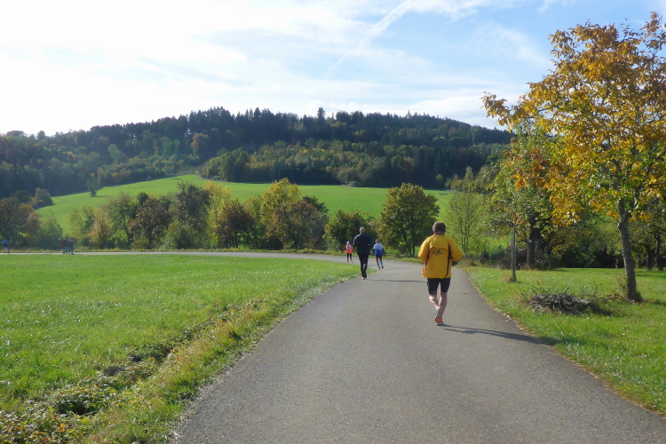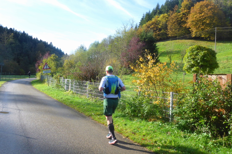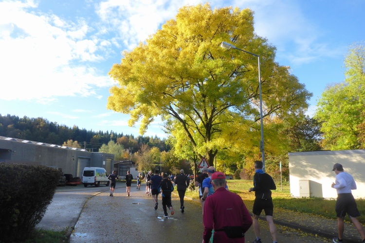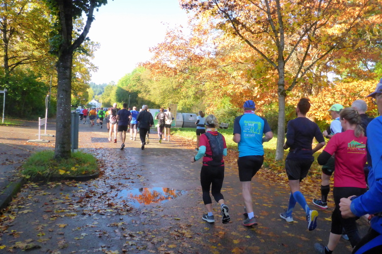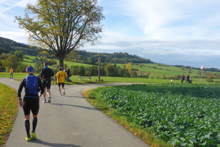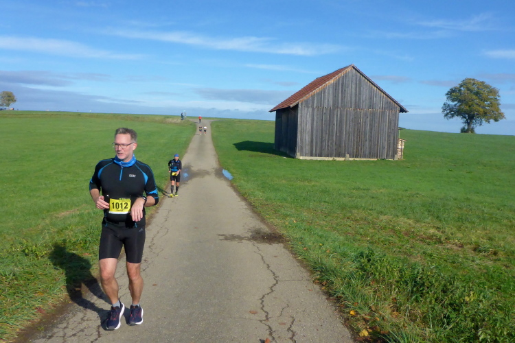 Zuletzt laufe ich noch einen Kilometer weit ähnlich wie beim Hinweg am Ortsrand, dann erreiche ich das Ziel. 7:13, nur 17 Minuten vor Zielschluss, mehr als eine Stunde später als beim letzten Mal. Aber dafür konnte ich aber auch die herrliche Herbstlandschaft länger genießen.