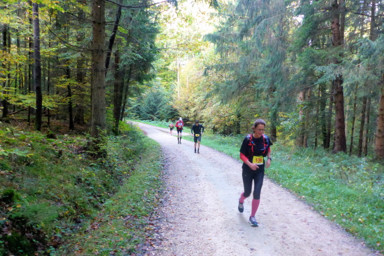 Entgegen der Wetterprognosen scheint am Morgen oft die Sonne und es bleibt bis gegen 16 Uhr trocken. Als ich vor 11 Jahren hier erstmals startete, sah ein Teil der frisch zugeschneiten Strecke ungewohnt weihnachtlich aus. Heute wird uns dagegen ein Musterbeispiel vom Goldenen Oktober geboten. Die bunten Herbstfarben scheinen regelrecht zu leuchten.