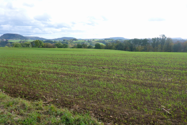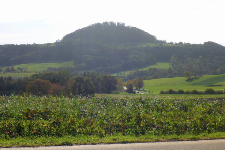 Bald sehe ich die Kaiserberge vor mir. Geologisch bezeichnet man sie als Zeugenberge, da sie nicht wie normale Berge durch Faltung der Landschaft, sondern durch Erosion entstanden. Vor Jahrmillionen bedeckte ein Meer diese Region. Aus den ehemaligen Korallenriffen entstand der Kalk, der heute das Plateau der Schwäbischen Alb bildet. Ursprünglich waren auch die drei Zeugenberge Bestandteil davon, doch im Laufe der Zeit wurden sie durch die Erosion davon getrennt und stehen nun wie kleine Inseln etwas abseits.