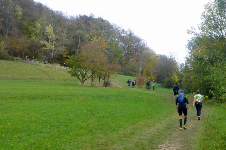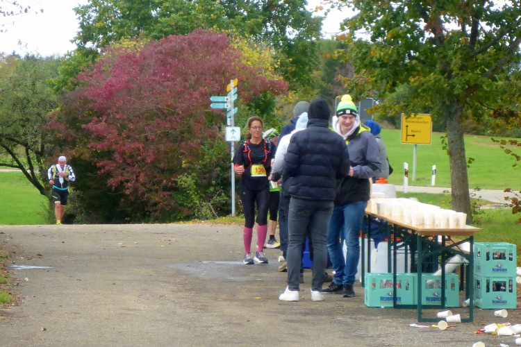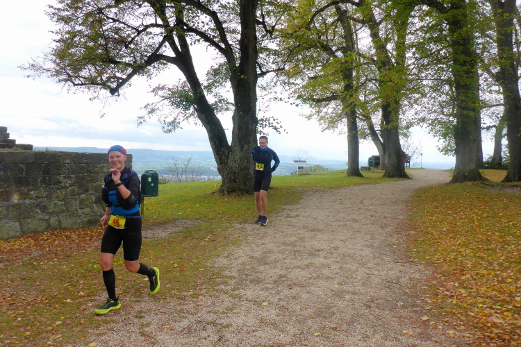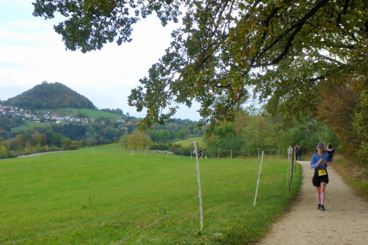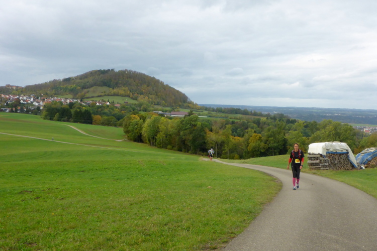 Da es auf der gesamten Strecke keine Kilometerangaben gibt, kann ich nur schlecht abschätzen, ob ich für meine Verhältnisse zu schnell laufe oder ob ich mich beeilen muss, um im Zeitlimit zu bleiben. Ich habe mir nur die Cut-Off-Zeit für Hohenrechberg aufgeschrieben und merke jetzt, dass mir noch eine halbe Stunde Reserve bleibt. Ich zweifle aber nicht daran, dass ich auch die zweite Streckenhälfte rechtzeitig schaffen werde, denn ich habe heute wirklich Bock auf die Strecke.