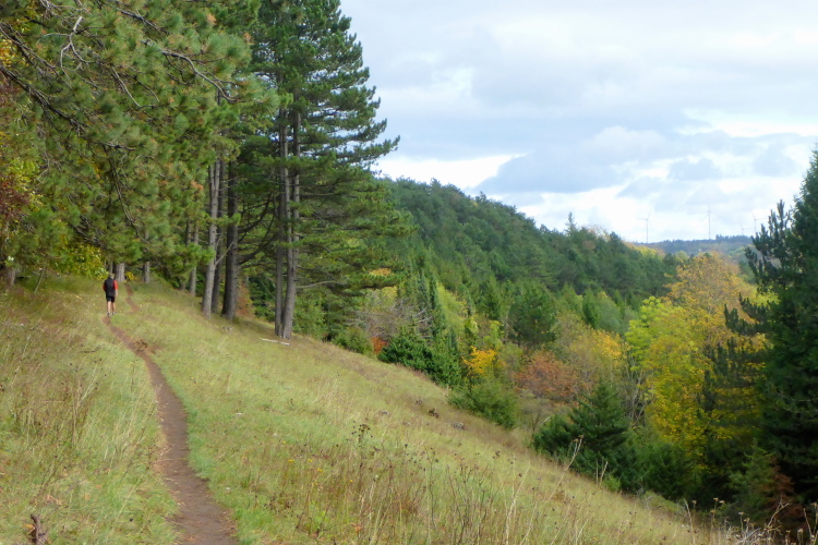 Ab km 14,5 ist für mich wieder Zeit zum Marschieren. Einen Kilometer weit geht es stramm bergauf, dann bleibt die Strecke eine Weile wieder relativ einfach. Ich komme an der Spielburg vorbei, kein historisches Gemäuer, sondern ein bis zu 15 m hoher Weißjurafelsen, der vor etwa 2,5 Millionen Jahren als Scholle vom Hohenstaufen abgeglitten ist.