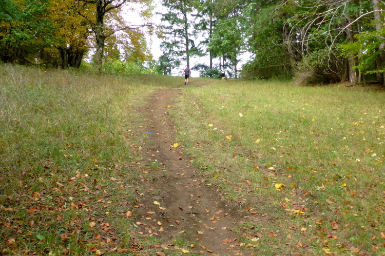 Am Ortsrand von Hohenstaufen beginnt der Aufstieg zu unserem ersten Gipfel. Zuerst marschiere ich über eine steile Wiese bergauf.