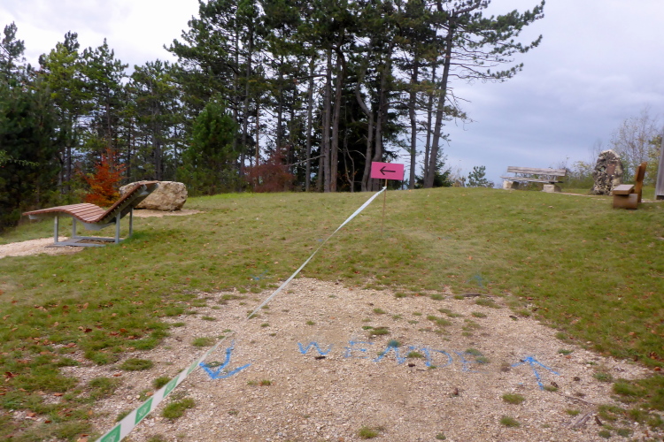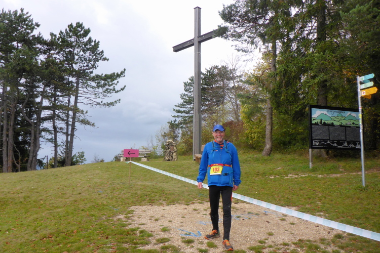 Hier stand nie eine Burg. An einer Freifläche auf der Westseite des Berges wurde 2011 ein 12 m hohes Holzkreuz aufgestellt. Vor diesem werden an einem Wendepunkt unsere Startnummern notiert.