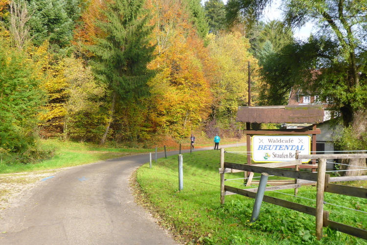 Immer in Hörweite der B29 geht es auf einem gut ausgebauten Wanderweg in westlicher Richtung an der Rems entlang, bis diese sich nach Norden hin verabschiedet. Wir kommen gut voran. Mir fällt jetzt schon auf, dass Laura bergauf richtig schnell gehen kann. Auch Bergab kann sie mir mühelos folgen.