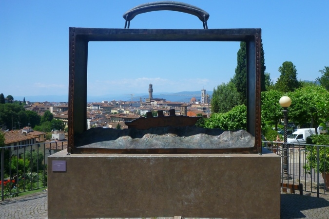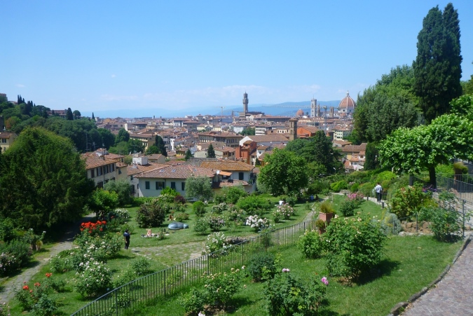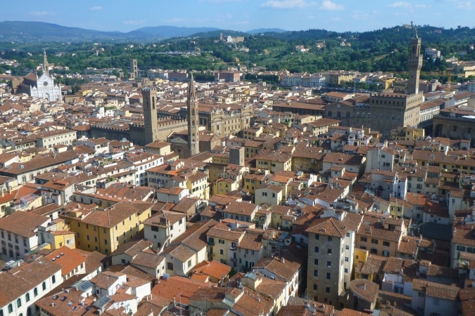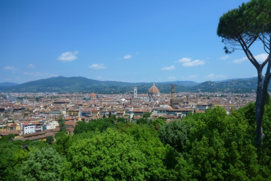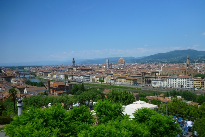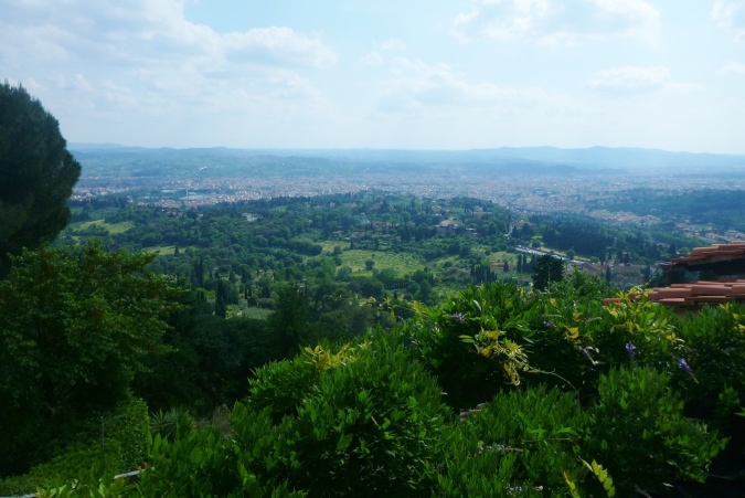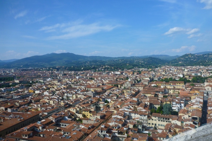 Unter uns wird Florenz immer kleiner. Der Blick hinunter ist fantastisch. Sieht gut aus, die Silhouette der Stadt mit der markanten Kuppel des Doms und dem Turm des Palazzo Vecchio.
