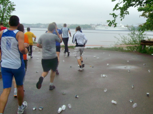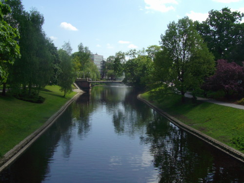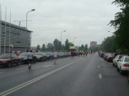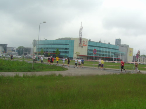 Nach einem Wendepunkt ging es zurück, wieder über die Brücke und dann auf der K. Valdemaraiela ungefähr 2 Kilometer weiter. Nach ein paar Kurven waren wir wieder in der Nähe der Arena, liefen in weitem Bogen um drei Hochhäuser und begannen die 2. Runde.