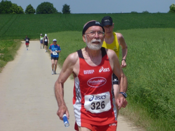 Seit einiger Zeit laufe ich mit Albert. Schnell vergehen so die ersten 15 km. Norbert kommt von hinten, auch Carmen und Steffi sind auch schon mal vorbei. Bei so kurzen Runden ist es normal, dass man oft überholt wird. Die Staffeln sind sowieso schneller, da sie ständig die Läufer wechseln. Am Staffelholz sind sie gut zu erkennen. Ich hab mittlerweile auch schon langsamere Mitstreiter überrundet.
