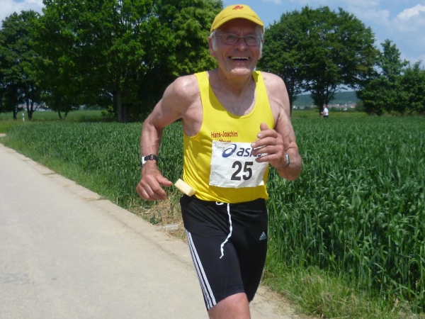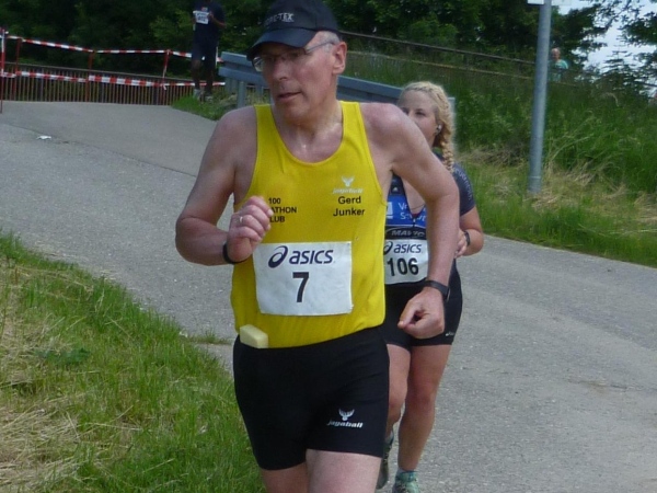 An der VP treffe ich Norbert. Ihm ging es gar nicht gut. Er ist die Hälfte der Zeit nur gewalkt. So hatten wir annähernd dasselbe Tempo und konnten uns nicht treffen. Nach der verdienten Dusche und einem kräftigen Vesper treffen wir alle wieder bei der Siegerehrung: Überragender Sieger ist Stefan Daum. Mit 64 Runden also 134,2 km konnte er dem ebenfalls pfeilschnellen Zahoran Adam am Ende 5 Runden abnehmen. Dritter wurde Rainer Lid.