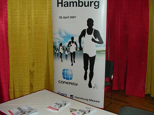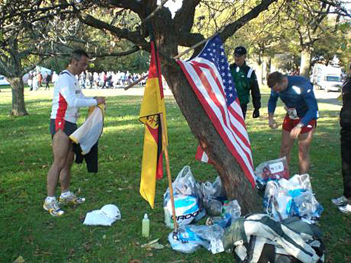 Militärs zeichnen sich in der Regel durch eine gute Organisation aus. So stellte das Bundeswehrkommando schon am Freitag einen Bus, mit dem ich und die anderen 12 deutschen Teilnehmer der Bundeswehr frühzeitig die Startunterlagen abholen konnten. Das Angebot war einer großen Veranstaltung angemessen. Besonders interessant war ein Stand mit Auslaufschuhmodellen für sage und schreibe 40 $ (das Paar, wohlgemerkt!).