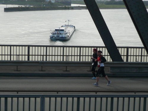 Ein neues Wahrzeichen überspannt seit Neustem den Rhein: Die Niederrheinbrücke. Mit ihren stählernden Seilen triumphiert sie seit 2009 über dem gewaltigen Fluß und bietet den Zuschauern eine geniale Gelegenheit, den verrückten Läufern auf der Brücke von 1953 zuzujubeln.