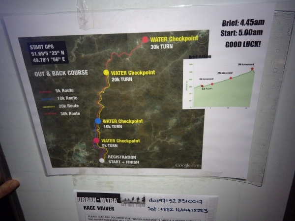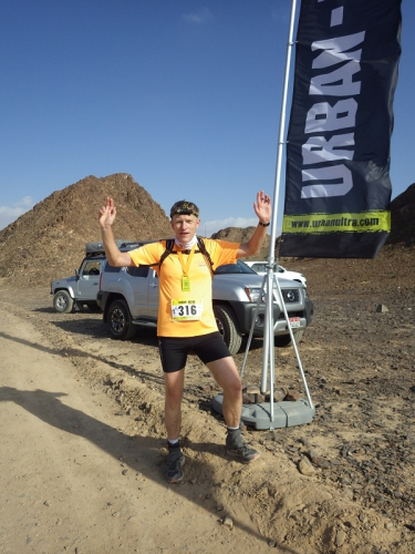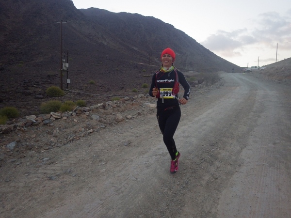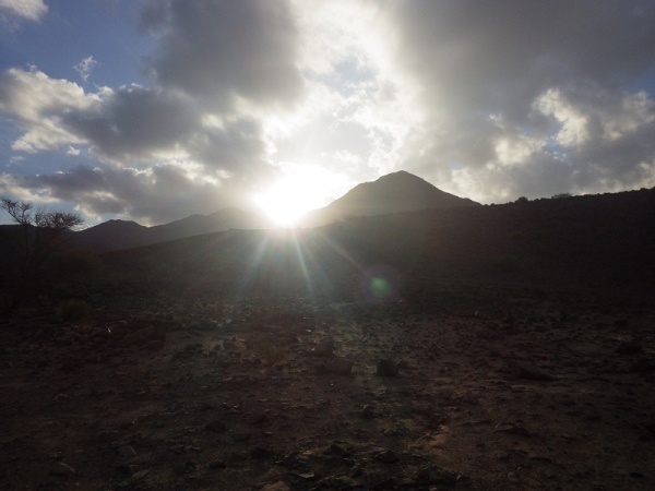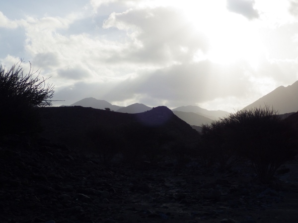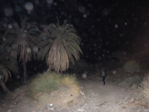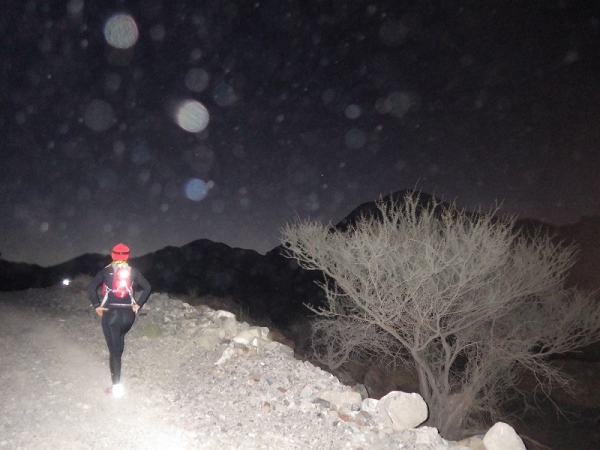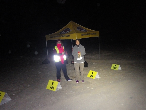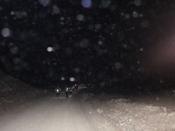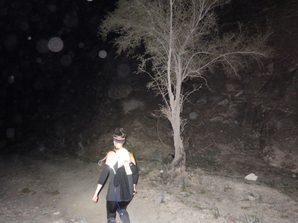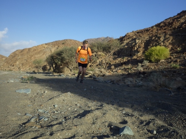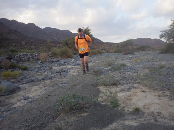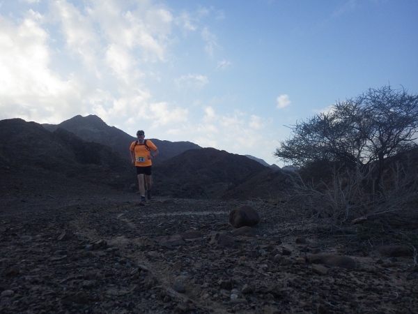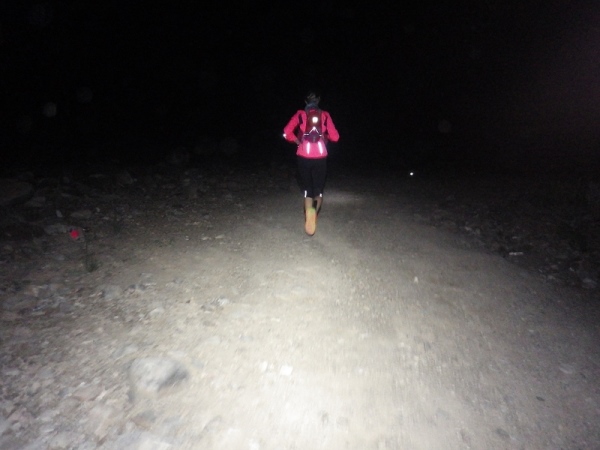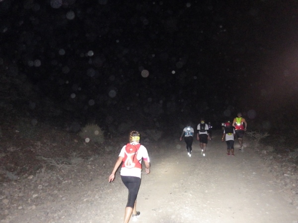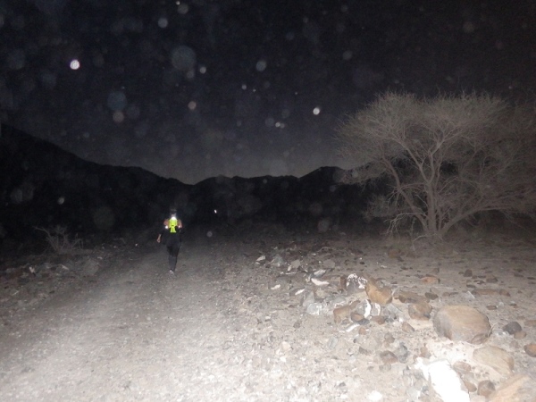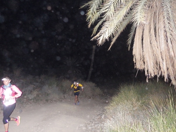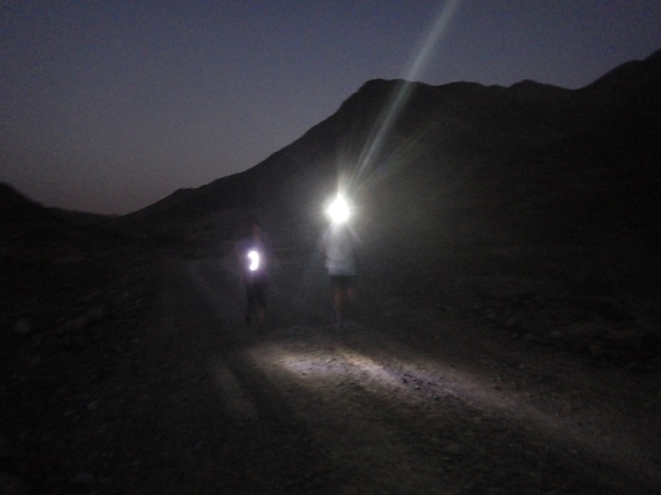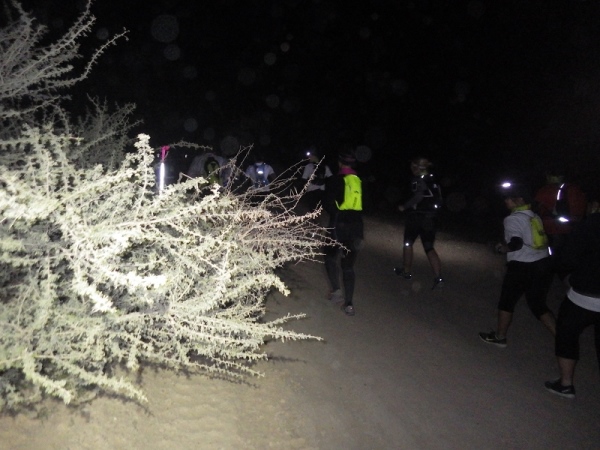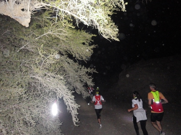 Man merkte schnell, dass unter der Oberfläche Wasser sein muss, denn es wuchsen überall vereinzelt Palmen, Bäume und sogar ein paar blühende Sträucher. Wir liefen ca. 2 Stunden mit den Stirnlampen, bis es endlich etwas hell wurde. Mittlerweile waren nur noch die 30 km Läufer auf der Strecke, die anderen hatten schon an den entsprechenden Wendemarken den Rückweg angetreten.