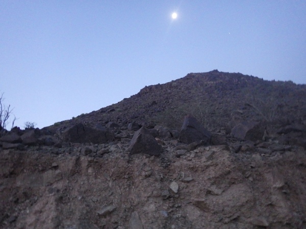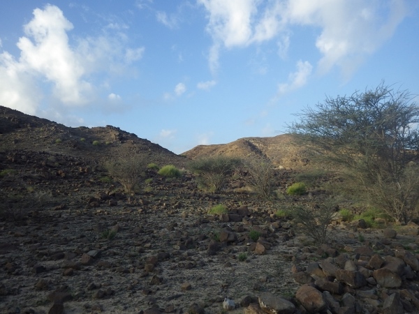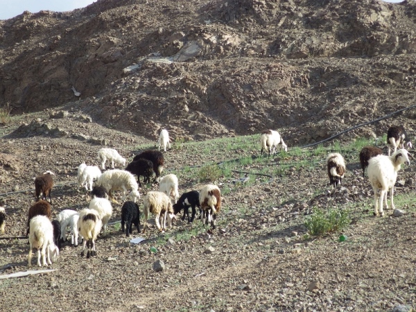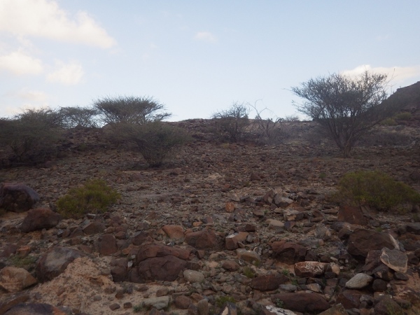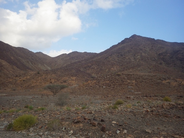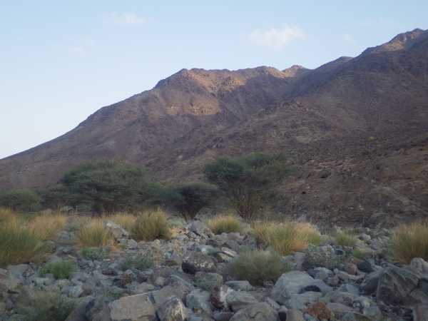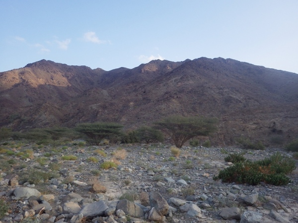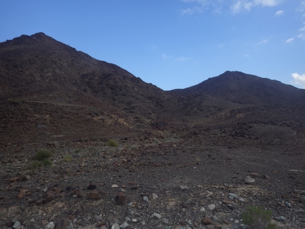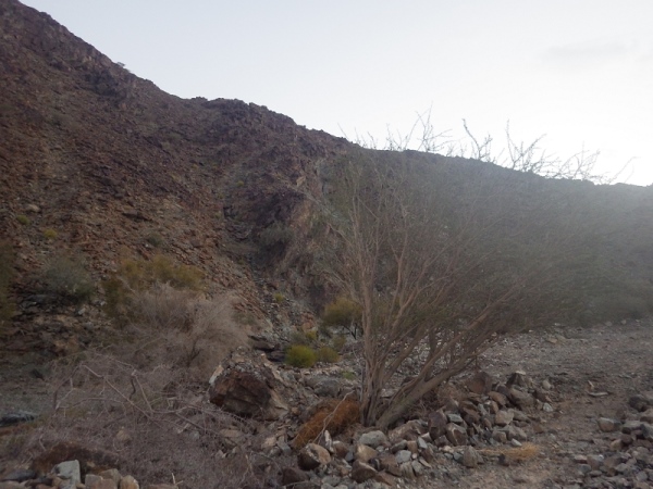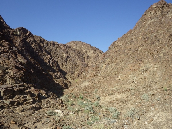 Also, wir werden wohl durch ein trockenes Bachbett laufen. Anfangs ging es noch auf einer Schotterstraße immer bergan. Wir waren halt am Ausgang des Wadis gestartet. Dann wechselten wir immer wieder auf schmale Ziegentrails mit Sand, Schotter und großen Steinen und Felsen.