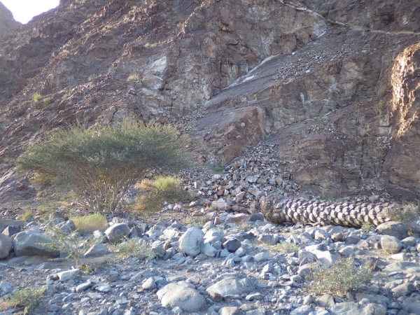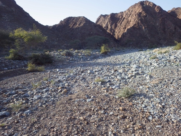 Was ist das, ein Wadi? Wadi ist arabisch und bedeutet eigentlich so viel wie ausgetrockneter Flusslauf, der nur nach starken Regenfällen vorübergehend Wasser führt. Zu einem überraschenden und schlagartigen Wasseranstieg kann es übrigens nach einem auch viele Kilometer entfernten Gewitter kommen.