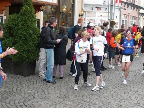 Das Besondere an diesem Staffelmarathon ist die Wertung: Es gibt nur eine einzige. Jedes Team besteht aus max. sechs Teilnehmern, Bedingung ist die Beteiligung mindestens einer Frau und eines Kindes bis 15 Jahre zumindest als Startläufer(in). Nach zwei kleinen Einführungsrunden von je 400 Metern sind 34 Runden von je ca. 1,2 km Länge zurückzulegen. Und die haben es durchaus in sich: Vom Start und Ziel am Rathaus geht es zunächst über eine lange Gerade, bevor die nächste Straße jäh zum Rhein hin abfällt. Zurück führt der Weg über die gut besuchte Rheinpromenade, auf der viele kalorienschaufelnde Restaurant- und Cafébesucher die Sportler beim Kalorienverbrennen bestaunen können. Die Läufer halten sich dafür allerdings beim Kuchenbuffet neben dem Rathaus schadlos. Verlorene Höhenmeter müssen dann durch ein mit einem Fallgitter versehenes Stadttor wieder gewonnen werden. Um die Kirche herum geht es schließlich erneut zum Start-/Ziel-Bereich.
