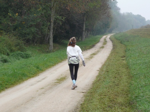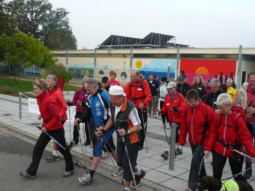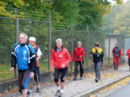 Vom Freibad führt jetzt die Strecke nach Norden. Vereinzelte Wohngebiete und Waldwege wechseln sich ab. Mein Tempo ist noch verhalten, da ich noch einige Aufnahmen der Walker machen will. Nach etwa zehn Minuten mache ich mich dann nach vorne davon.