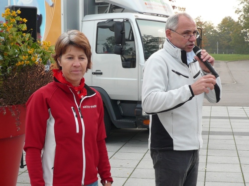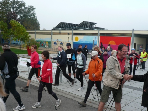 Die 50 Langstreckler werden nach einem Grußwort des Vertreters vom Bayerischen Landessportverband Hans Schneider unspektakulär mit einem „Auf die Plätze – fertig – los“ auf die Strecke gelassen. Ich bin froh, endlich unterwegs zu sein, denn der Wind hat nicht nur mich ausgekühlt.