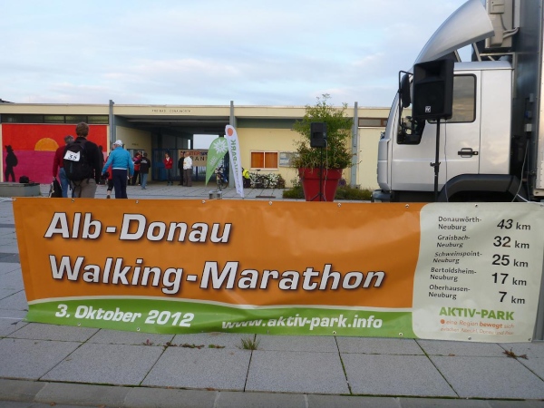 Wie im letzten Jahr nutze ich den Alb-Donau Walking-Marathon für einen ruhigen Lauf vor meinem schnellen Herbstmarathon in Kürze. Und heute erfreut uns Petrus, denn schon in aller Herrgottsfrüh ist unsere Sicht klar und nicht vernebelt.
