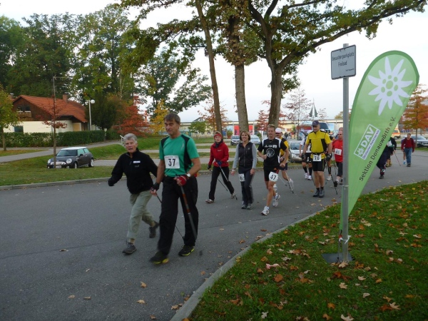 Nach kurzen Grußworten werden die 30 bis 40 Walker und Läufer kurz nach acht Uhr mit dem Zusammenschlagen von zwei Topfdeckeln als Startsignal auf die Strecke losgelassen.