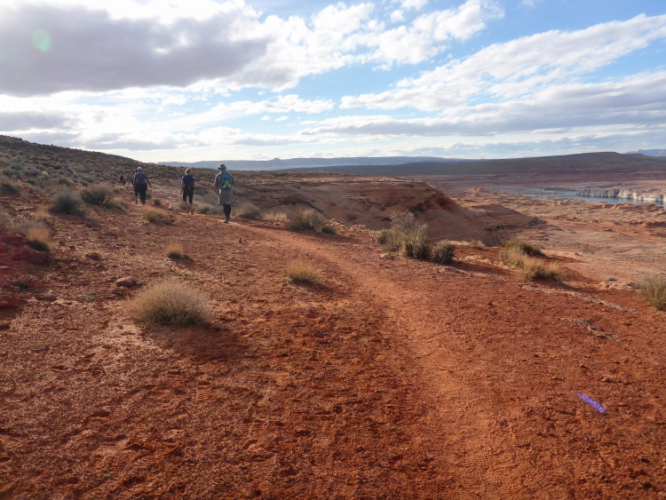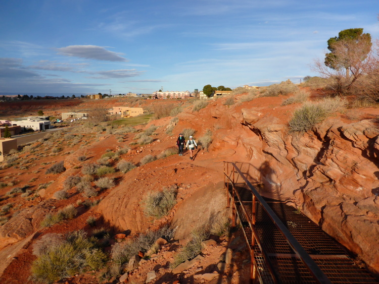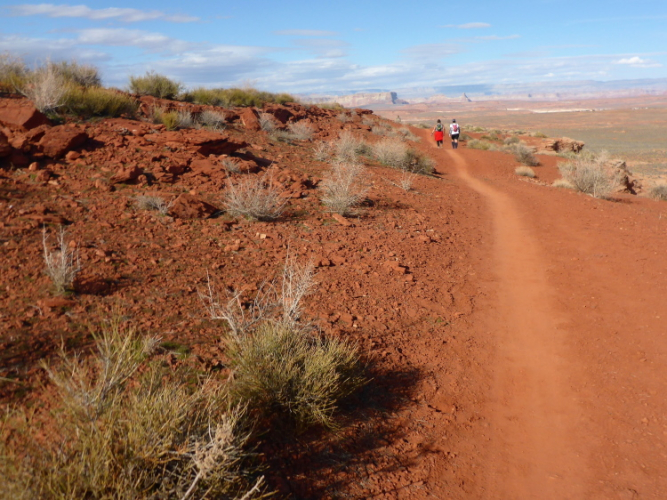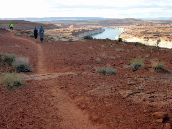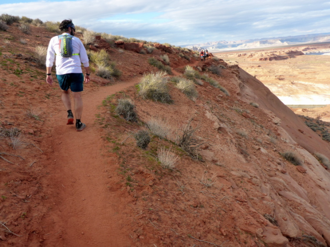 Also geht es Anfang März mit meiner Frau in 11 Stunden Flug direkt nach Las Vegas, wo wir eine Stunde nach der Landung unseren Mietwagen in Empfang nehmen können. Nach einer Schleife durch das Death Valley geht es direkt nach Page. Die Stadt am Lake Powell ist ein guter Stützpunkt für Ausflüge in die nähere und weitere Umgebung. Zion Nationalpark, Grand Canyon, Monument Valley, Colorado River, alles an einem Tag zu erreichen. Aber auch das direkte Umfeld hat genug zu bieten, besonders wenn man jemanden hat, der einem gute Ausflugstipps geben kann. Da meine Frau keine Läuferin ist, schauen wir uns also schon mal im Vorfeld ein paar Highlights der Strecke an, wobei die Vorfreude immer größer wird.