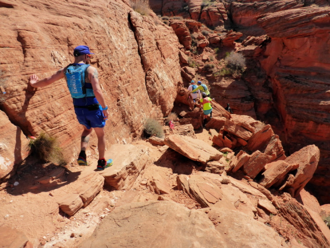 Schnell mal die Kosten gecheckt und siehe da: der Flug nach Las Vegas ist bei frühzeitiger Buchung gar nicht mal so teuer. Bei der Anmeldung dann die erste Enttäuschung. Der 50 Meiler, der durch alle Slot-Canyons führt, ist schon ausgebucht. Also melde ich mich bei den 55 Kilometern an und befolge den Rat des Veranstalters, später ein Ticket auf Facebook zu ergattern, was auch recht einfach war. Ich habe dann mein Ticket auf die gleiche Weise über die Veranstaltungsseite losbekommen. Anmeldung und Umschreibung sind vorbildlich geregelt.
