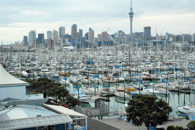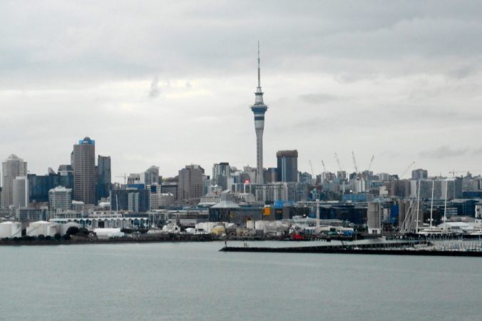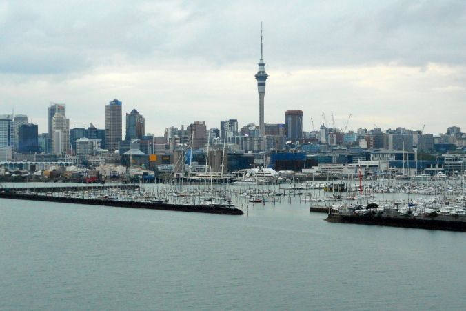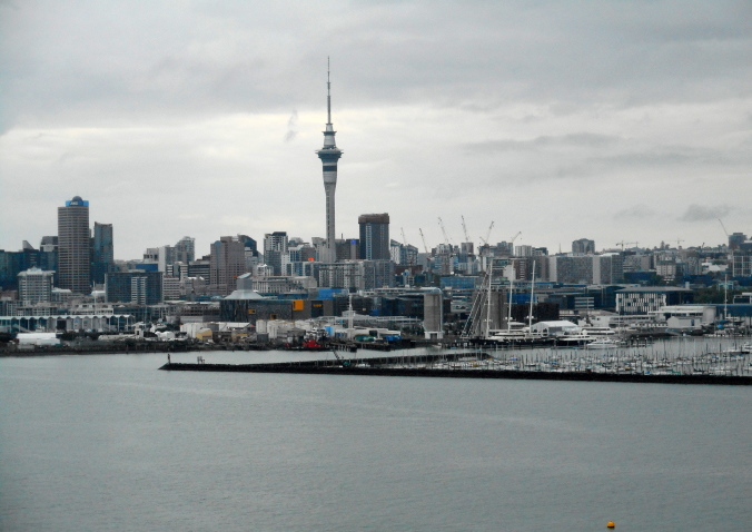 Auckland ist zwar nicht die Hauptstadt Neuseelands (das ist das deutlich kleinere Wellington), aber das wirtschaftliche Zentrum des Landes und die mit Abstand größte Stadt; sie hat etwa 1,4 Millionen Einwohner, das ist ungefähr ein Drittel der Einwohner des ganzen Landes. 1840 wurde sie von britischen Kolonisatoren gegründet und benannt nach einem Lord der britischen Admiralität. Sie liegt im Norden der Nordinsel Neuseelands. Landschaftlich geprägt ist sie zum einen von der Lage am Wasser, neben einem wichtigen Hafen für Industriegüter und Kreuzfahrten gibt es viele Yachthäfen mit Tausenden von Segelbooten, die das Stadtbild prägen. Daher der Beiname „City of sails“, Stadt der Segel. Die vor den Briten von Polynesien aus nach Neuseeland gelangten Maori haben noch einen anderen Namen für Auckland gefunden: „Tāmaki Makaurau“ – „Eine junge Schönheit mit 100 Liebhabern“. Na dann …