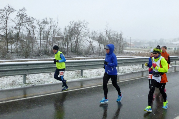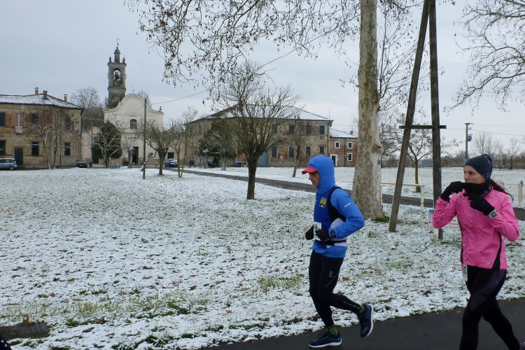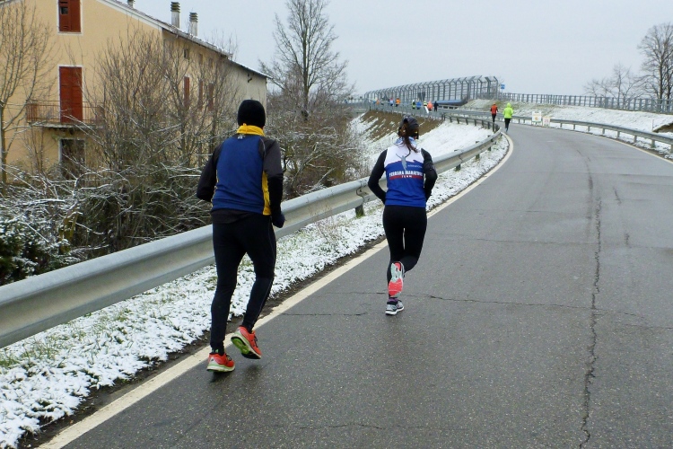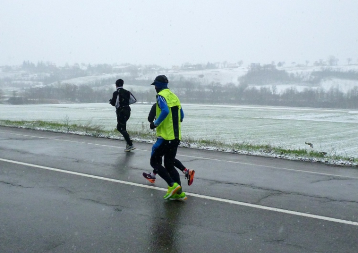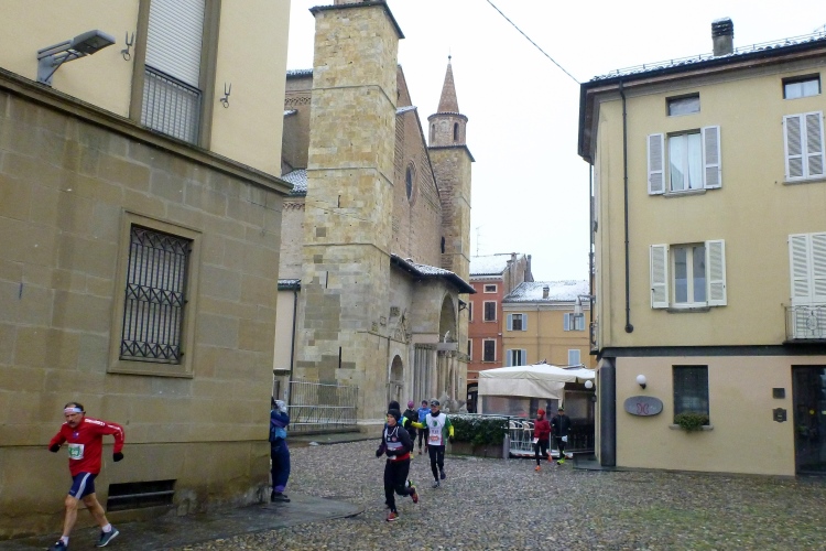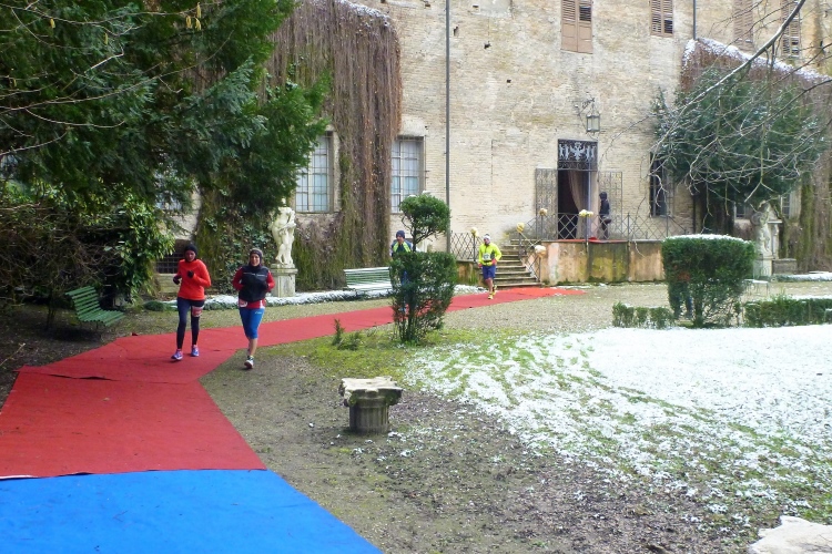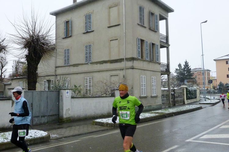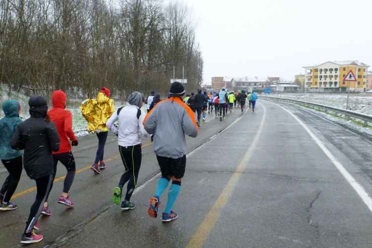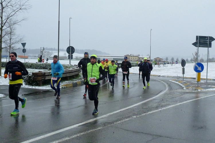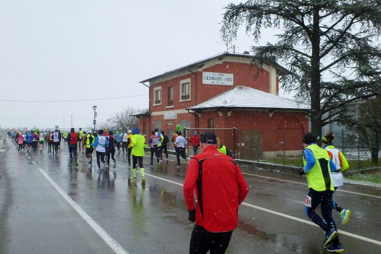 Emilia-Romagna, wer verbindet mit diesem Namen nicht die Badestrände an der Adria beidseits von Rimini? Sommer, Sonne und süßes Nichtstun. Nun ist aber noch Winter und diese Zeit bietet sich natürlich auch für den Marathon-Sport an. Normalerweise versprechen gemäßigte Temperaturen im Westen der Region ein schönes Laufevent. Auf der Webseite des Verdi-  Marathons werden die Start- und Zieltemperaturen der letzten 20 Austragungen genau aufgeführt. So um die 10 Grad plus sind immer drin. Also brechen Judith und ich wieder einmal zu einem Laufwochenende in Italien auf. Dumm nur, dass uns dieses Jahr die sibirische Kälte erwischen wird und  wir statt wunderschönen Sonnen-Impressionen eher triste Schneebilder mit nach Hause bringen. Davon sollte sich aber niemand abschrecken lassen.