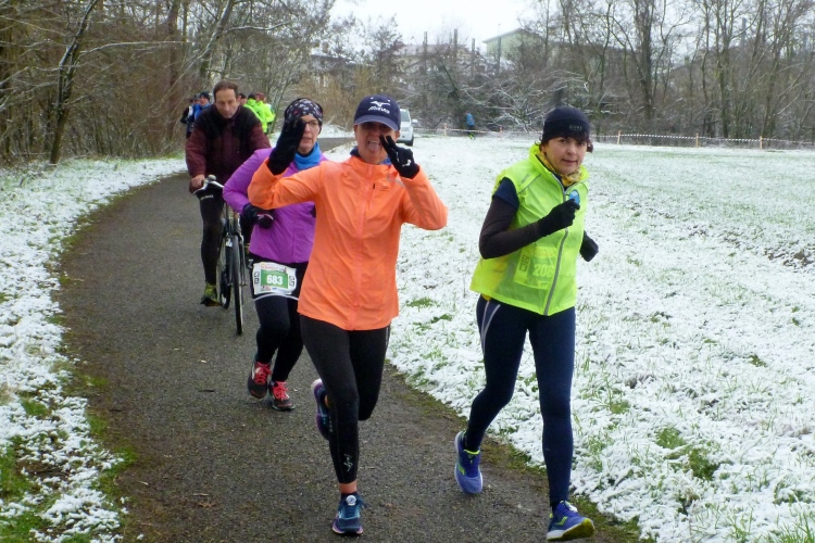 Mit einer warmen Schokolade gehe ich den Läufern entgegen. Judith muss jetzt auch bald kommen und ich kann in Ruhe noch einige Fotos schießen. Judith wird heute 3. der Altersklasse und kann mit einem großen Paket voller Lebensmittel die Heimreise antreten.