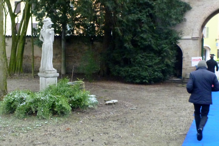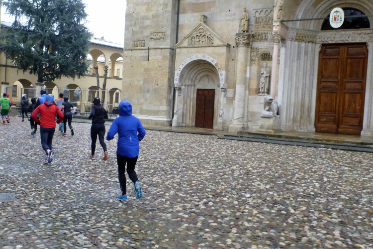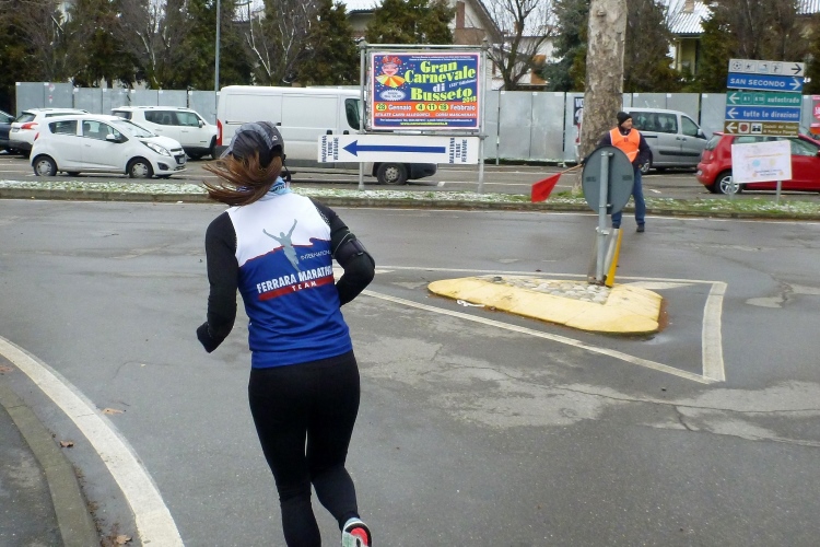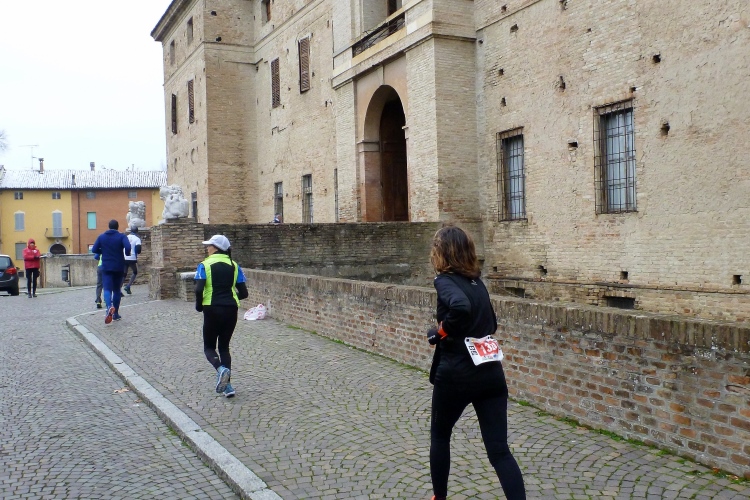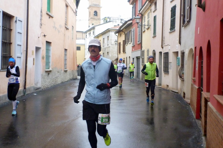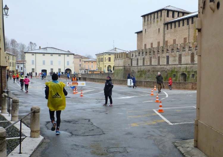 Eine Weile verfolge ich schon eine Läuferin mit dem T-Shirt des Ferrara Marathons. Die dortige Festung ist ja auch recht imposant. So wie es hier in der Bassa unzählige Festungen, Kirchen und Adelsgeschlechter gibt. Aber aktuell viel interessanter ist sicher dies: Der Karneval von Busseto kündigt auf einem großen Plakat die 137. Session an. Überall liegt Konfetti in den Straßen. Wie in vielen anderen Gegenden hält man sich hier beim Karneval an den Kalender und nicht an das Kirchenjahr.