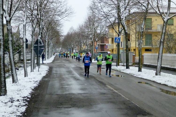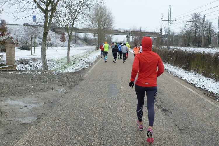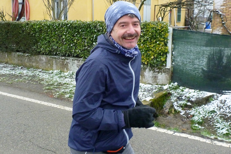 Durch einen Linksknick können wir nun auch die entfernten schneebedeckten Ausläufer des Apennins sehen. Schön. Der Ostwind aus Sibirien treibt mich vor sich her. Ein spannender Lauf.