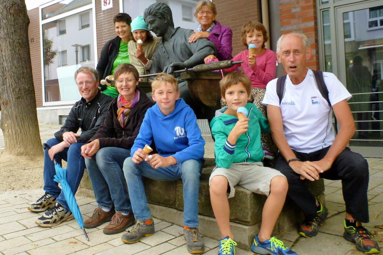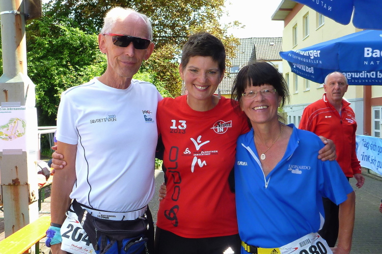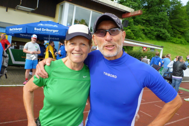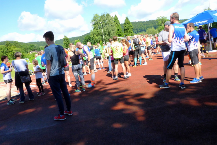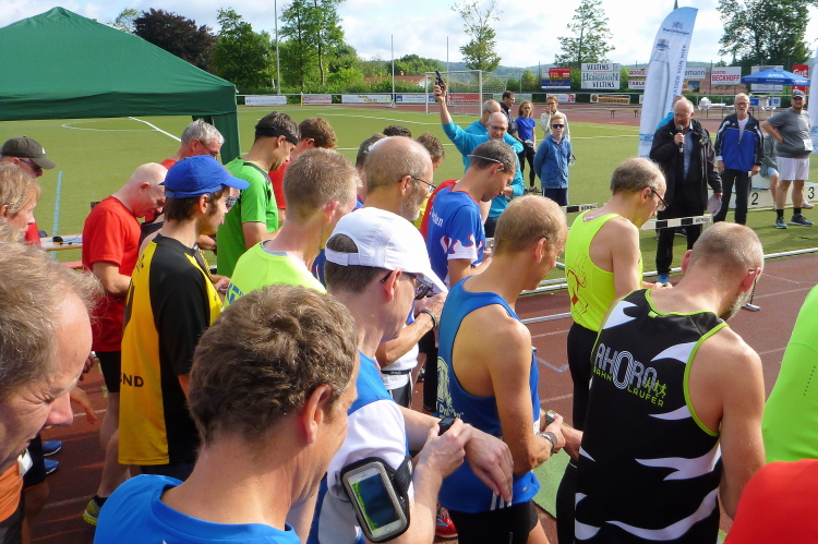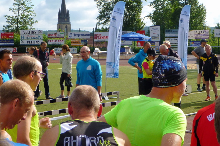 Der Brunnenlauf wird bereits zum 32. Mal vom TV Jahn Bad Driburg veranstaltet und ist im Veranstaltungskalender der Stadt verankert. Markus berichtet mir, dass regelmäßig an die 350 Läufer, hauptsächlich aus der Region, kommen. Nach den regnerischen Tagen zuvor wird die Strecke nicht gerade einfach zu belaufen sein. Markus selbst wird sich nicht mir messen können, da er als Helfer bei der Ausgabe der Startnummern eingesetzt ist. Dafür klopft mir dann Werner Kleffer aus Paderborn auf die Schulter. Vor Wochenfrist in Gstaad hatten wir uns dort während des Glacier 3000 Marathon kennen gelernt. Er hatte leider kein Glück mit seinem Finish, denn er hatte das Zeitlimit auf Cabane nur um wenige Minuten überschritten. Heute werden wir damit kein Problem haben, denn das Ziel bleibt bis zum letzten Teilnehmer offen ….