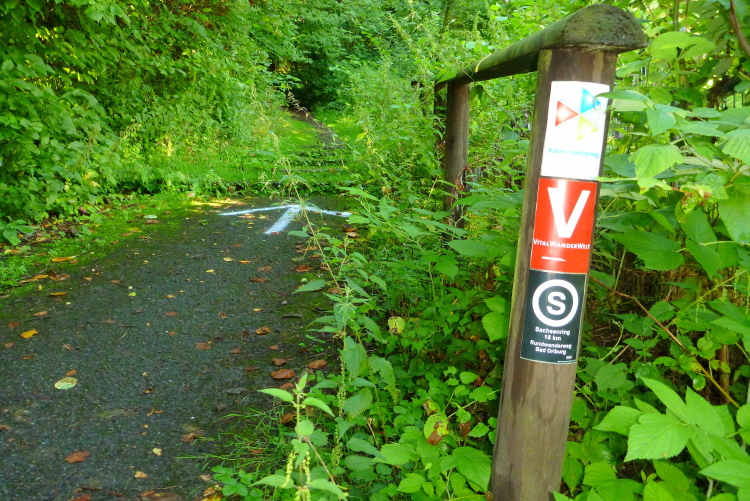 Kilometer acht liegt hinter uns, da sehen wir links oberhalb das Mausoleum der Adligen von Oeynhausen-Sierstorpff in unmittelbarer Nähe des Rosenbergs. Wir befinden wir uns weiterhin im Wald, an einigen Stellen können wir nach Bad Driburg schauen. Der Sachsenring-Rundwanderweg hat den Vorteil, dass ihn als Urlauber an vielen Stellen beginnen und beenden kann. Ein paar Serpentinen bringen uns hinunter zur Brunnenstraße mit dem Freibad, das jetzt gerade verwaist ist. Die Straße wird von Helfern überwacht. Ein paar Meter laufen wir auf Asphalt, dann geht es auf der anderen Seite nach einem Anlauf viele Treppen hinauf. Als City-Trail kann man diesen Teil jetzt auch beschreiben.