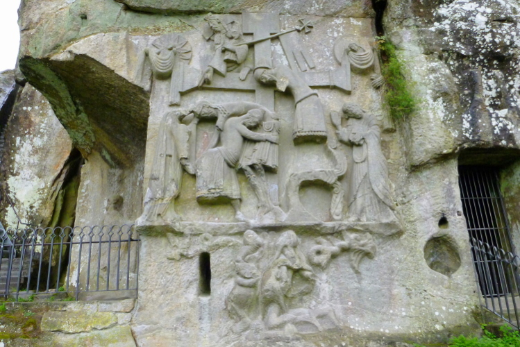 Die Externsteine liegen im Gebiet der Stadt Horn-Bad Meinberg. Die markante Sandstein-Felsformation ist eine herausragende Natursehenswürdigkeit. Zwei der Steine können über steile Treppen bestiegen werden. An einem Stein ist ein Kreuzabnahmerelief zu sehen. Das Relief soll aus dem neunten Jahrhundert stammen.