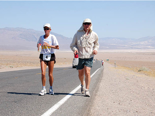 Als ich im Frühjahr 2004 von dem runex 123-Projekt erfuhr, meldete ich mich sogleich bei Dr. Finkernagel als Supporter; bot mir dies doch die Möglichkeit, mich mit den Eigenheiten des Badwater-Ultramarathons vertraut zu machen, was sich in der Tat als Vorbereitung für meine eigene läuferische Teilnahme von unschätzbaren Wert erwies. Im Herbst desselben Jahres war ich dann wieder auf Reunion. Diesmal begleitete mich Sigrid Eichner, die lebende Deutsche Lauflegende, die als einzige Frau weltweit seit April 2005 sage und schreibe über 1.000 Marathons gelaufen ist. Das Rennen auf der franz. Tropeninsel begeisterte Sigrid genau wie mich und als ich ihr vom „Badwater“ erzählte war sie sofort „Feuer und Flamme“. Im Januar bewarben wir uns bei Chris Costman, dem Renndirektor und die Einladung kam…..
