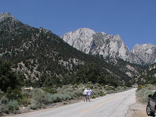 Nach 100 Metern kommt dann der Abzweig, der zum Mt. Whitney Portal hinaufführt. Eine Pause ist fällig; ich setze mich auf meinen geliebten Leinenstuhl und verspeise eine Tafel Schokolade und trinke Coca-Cola. Ha, wenn ich jetzt vorsichtig bin, kann nichts mehr schief gehen, denn ich habe alle Zeit der Welt, denke ich.
