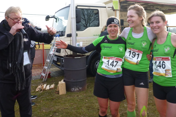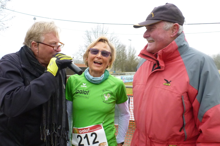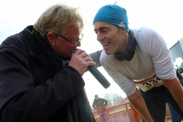 Nach einer kurzen Erholung an der Verpflegungsstelle kommt meine Kür. Ich darf die restlichen Rennen beobachten, fotografieren, mit anderen Läufern ratschen. Sehr gut gelöst hat Klaus Geuß die Siegerehrungen, die pünktlich im Sportheim stattfinden. Artur Schmidt moderiert fachkundig Lauf für Lauf und holt sich dann jeweils die Sieger kurz nach der Zielankunft zu sich ans Mikrophon.
