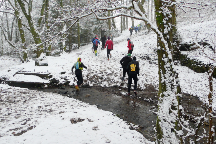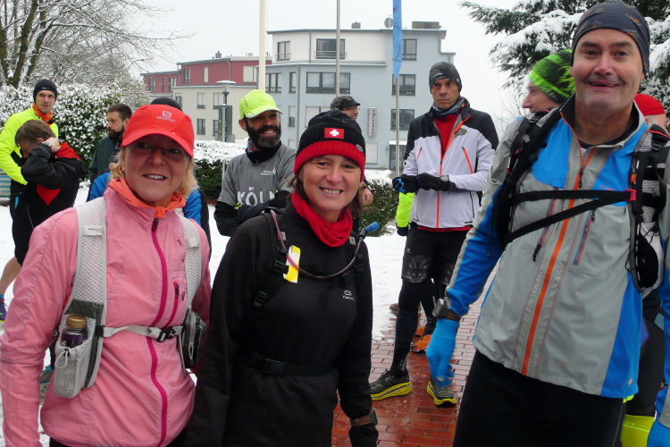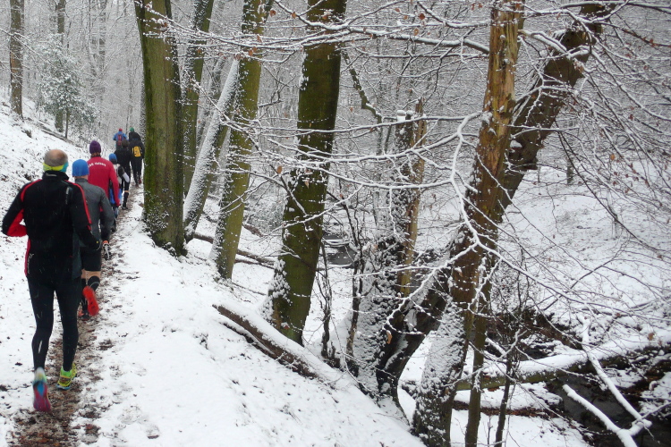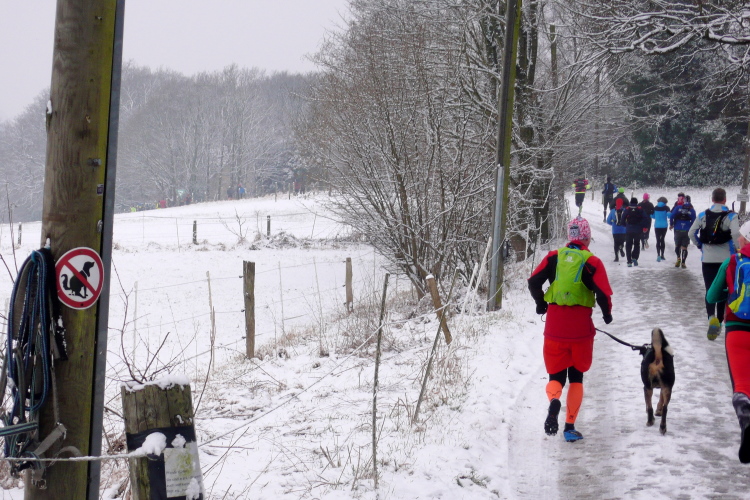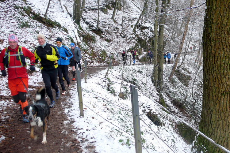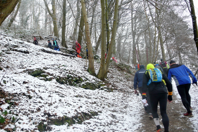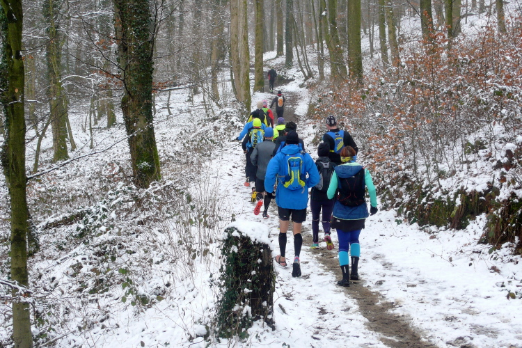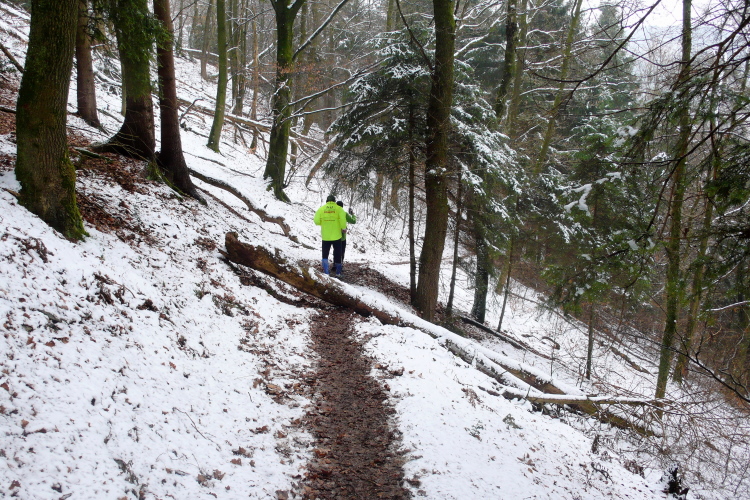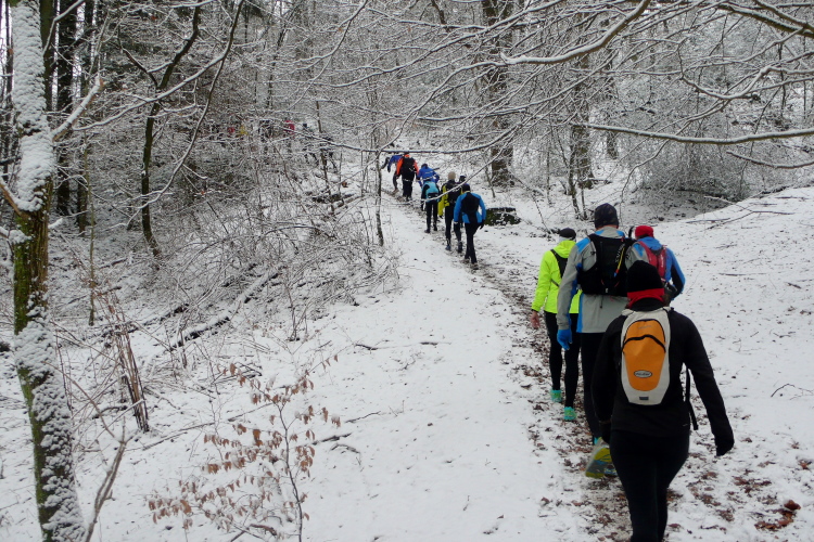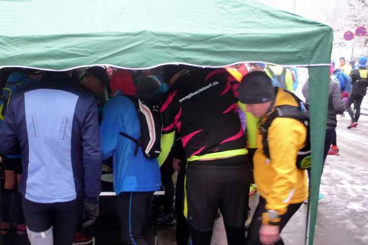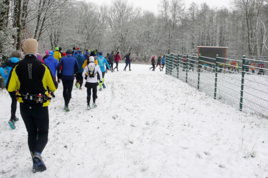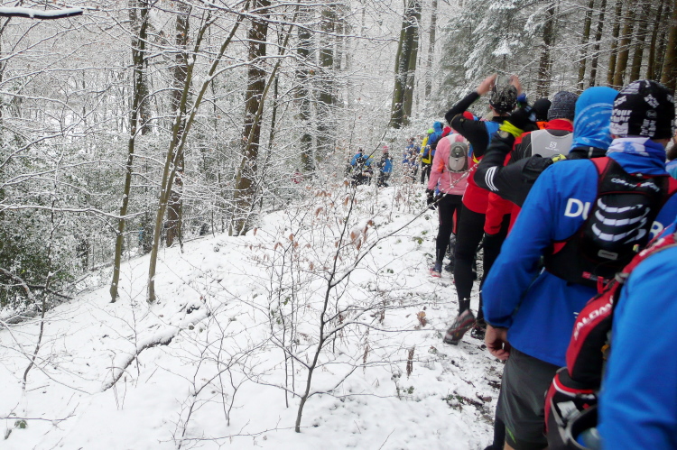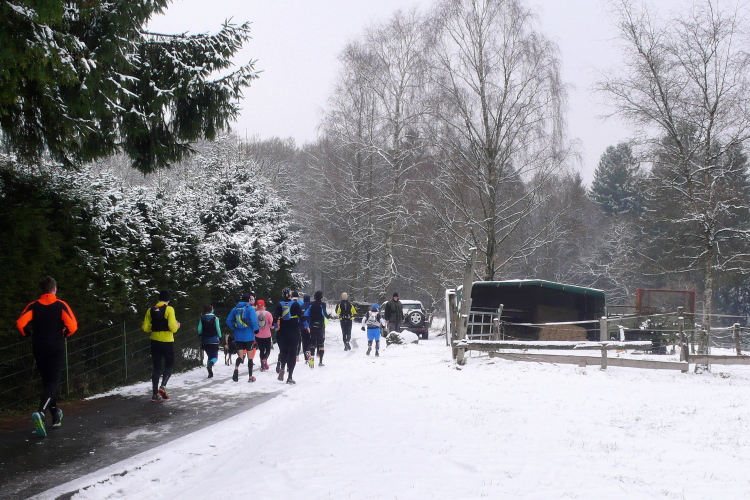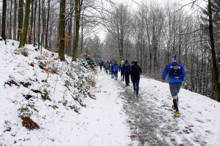 Oli organisiert den Lauf mit Herzblut. Wochenlang. Man merkt es am Text seiner News, wenn letzte Tipps zum Wetter, zur Strecke, zur Ausrüstung kommen. Es schadet nicht, darauf zu hören. Etwa ein gutes Drittel der Strecke ist wunderbarer Singletrail. Mit allem, was dazugehört. Zumindest gutes Profil unter den Tretern sollte schon sein. Wir haben ja Februar. Irgendwie noch Winter, also nass, windig, a...kalt, schlammig und jedes Mal unvorhersehbar anders. So auch in der Nacht. Der Winter zeigt sich mal wieder von seiner besten Seite und schickt Schnee. Reichlich. Und plötzlich ist alles wieder ganz anders als geplant...