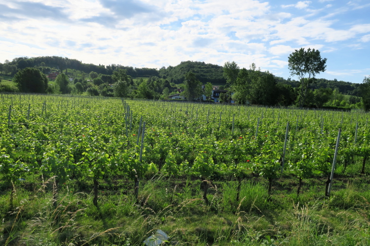 Bei Cellatica, einer Gemeinde mit ca. 5000 Einwohnern sind 14 km geschafft. Ich spüre keine Eile, der Zeitplan passt noch gut. Francesca und Luigi liegen nur 100 m vor mir. Der Kurs verläuft auf Seitenwegen inmitten von idyllischen Weingärten und herrschaftlichen Besitztümern, der Gedanke an Fellinis Monumentalfilm 1900 kommt auf.