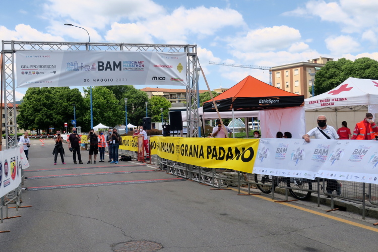 Als es durch die Innenstadt von Brescia geht, vorbei an den römischen Ruinen, zum Domplatz und der Piazza della Loggia, applaudieren Hunderte Zuschauer von ihren Sesseln in den umliegenden Cafés aus. Die 35 km-Marke bei den römischen Ruinen ist erreicht, aber der ansteigende Rückweg in einer langen Schleife mit Abweichungen wird zäh. Es sind immer wieder Höhenmeter zu überwinden, man spürt den Anstieg. Die letzten Kilometer bis ins Ziel, das unweit des Starts ist, ziehen sich. Mit Verspätung, aber zufrieden finishe ich meine ersten Marathon seit dem 31.10.2020. Ich warte, bis der Letzte, von mehr als einem Dutzend motorisierten Polizisten eskortiert, mit einem lauten Hubkonzert eintrifft.