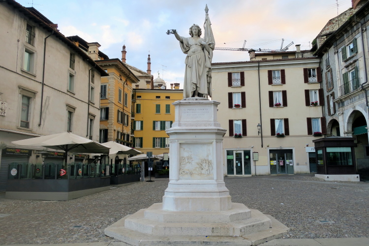 Das erste und einzige Mal in Brescia war ich 1971, ich besuchte eine holländische Familie am Gardasee – genau genommen nur Agnes, deren Tochter. Die Eltern ließen sich streng konservativ von ihren Kindern mit Sie ansprechen. Wir fuhren vom Peschiera am Gardasee nach Verona und waren einen Halbtag auch in Brescia. Seit damals wurden einige Sehenswürdigkeiten in das UNESCO Weltkulturerbe aufgenommen, wie bspw. der monumentale Bereich des Forum Romanum und der klösterliche Komplex von San Salvatore-Santa Giulia. Auch der historisch desinteressierte und daher vielleicht nicht kundige Besucher der Stadt sieht eine Fülle von Bauwerken aus der Antike, dem Mittelalter, der Renaissance sowie dem Barock. Einen Steinwurf vom Hotel Vittoria entfernt sind viele imposante Bauwerke zu besichtigen: der 1433 eröffnete schönste Platz der Stadt, die Piazza della Loggia, wird von dem prächtigen Renaissance-Gebäude der Loggia beherrscht. Dort sieht man auch die aus dem 16. Jahrhundert stammende astronomische Uhr, die noch immer in Betrieb ist und die außer der Uhrzeit auch astronomische Sachverhalte wie die Lage von Sonne und Mond über dem Horizont und im Tierkreis anzeigt. Gleich dahinter, durch eine Gasse mit renovierten historischen Häusern getrennt, kommt man zum Domplatz, rechts der alte romanische Rest des Doms, zur Linken der üppige barocke Bau aus dem 17. Jahrhundert. Rund um den Domplatz sind zahlreiche bestens besuchte Cafés, die Maskenpflicht ist beim Essen und Trinken nicht einzuhalten, wie auch?