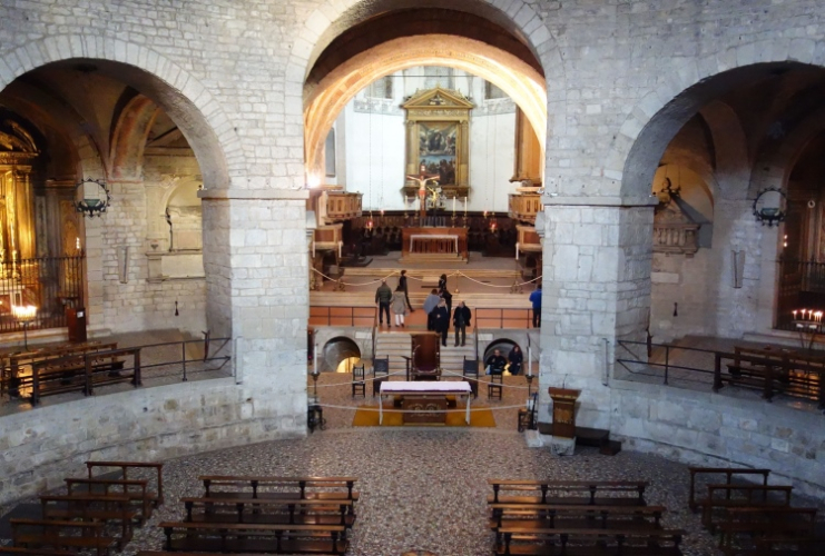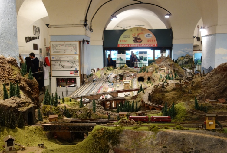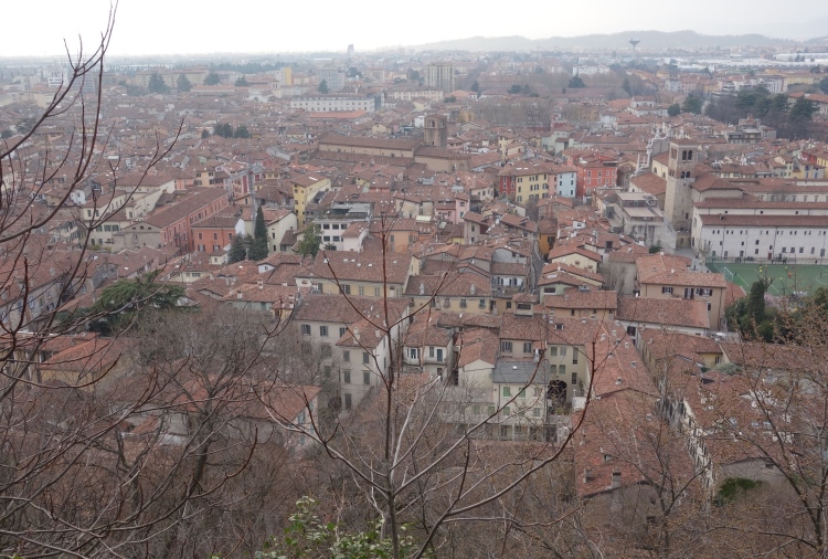 Der alte Dom nebenan gilt als eines der eindrucksvollsten romanischen Kirchenbauwerke der Lombardei. Er ist quasi tiefergelegt, nach dem Betreten führen Stufen abwärts. Noch ein kleines Schleifchen über den Corso Zarnadelli mit seinen Häusern samt Laubengängen. Wir biegen auf die Piazza della Loggia ein. Vor uns das Renaissancegebäude, errichtet 1484 von den Venezianern als Gegenstück zum mittelalterlichem Domplatz. Hinter uns die mittelalterliche Uhr mit den Figuren Macc dè lé ure (die Verrückten der Stunden), die ebensolche schlagen.