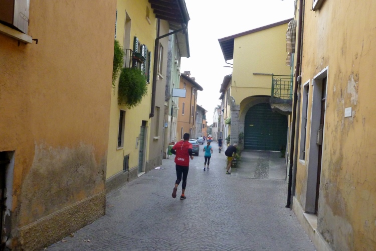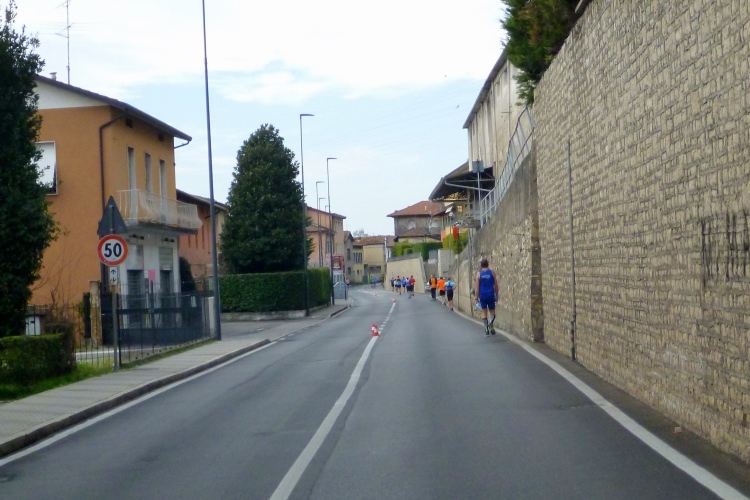 Wir sind auf der Viale Venezia, einer Einfallstraße nach Brescia. Drei lange Kilometer folgen, gefühlt geht es immer nur bergauf. Aber nur gefühlt. Die größeren Anstiege haben wir am Anfang frisch und ohne viel Mühe genommen. Der Lauf ist mit zirka 150 Höhenmetern eher flach.