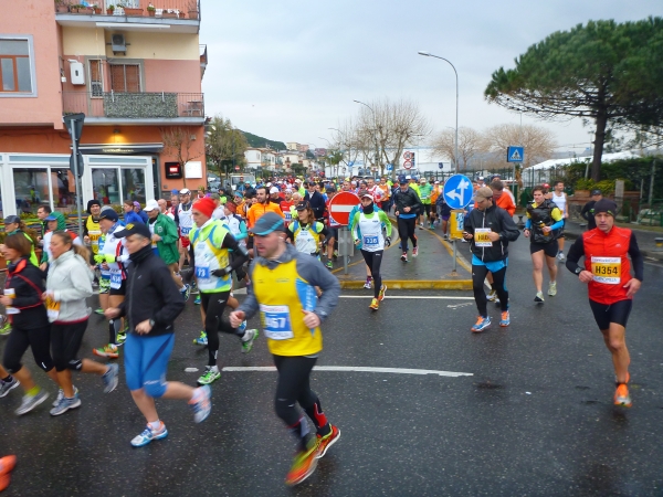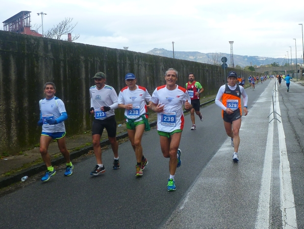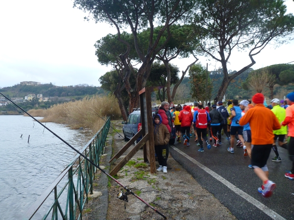 Der Startschuss fällt und wir laufen erst einmal eine Runde um den Lago Lucrino. An der Landspitze Miseno hinter Pozzuoli gibt es viele historische Stätten wie Baia und  Cuma. Für die interessieren wir uns jetzt nicht. Es gilt im Feld der etwa 1.000 Läufer insgesamt den weniger als einen Km langen See zu umlaufen und eine Schleife Richtung Pozzuoli zu absolvieren.