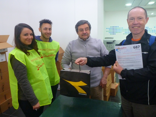 Samstag ist Programm in der Stadt und Abholung der Startunterlagen. In der Nähe des kleinen Castel dell'Ovo in der Via Arcoleo ist in einem Autohaus die Startnummernausgabe. Wir treffen auf Sergio vom Orgateam. Sergio erkennt uns direkt wieder und wir haben eine angeregte Unterhaltung. Die Kölschgläser als Mitbringsel kommen gut an. Wir stehen halt auch im Lande der Pizza und des Weines zu unserer rheinischen Heimat.