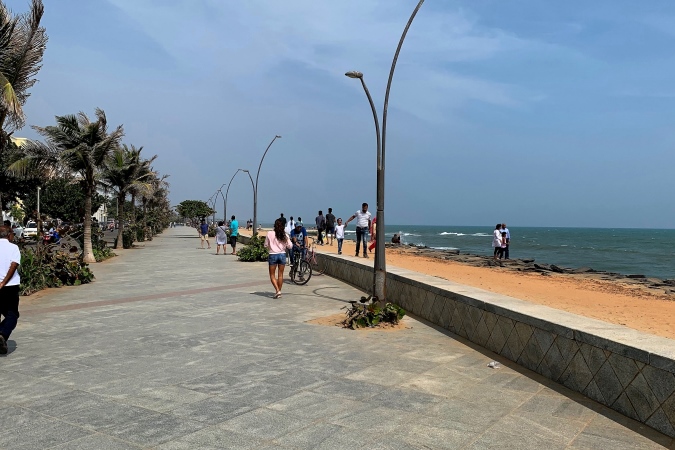 Für einen weiteren Tagesausflug bietet sich das 150 km entfernt liegende Pondicherry, auch Puducherry genannt, an. Es war bis 1954 Hauptstadt von Französisch-Indien und ist heute ein Unionsterritorium als Enklave im Bundesstaat Tamil Nadu. An die französische Kolonialzeit erinnert das Französische Viertel mit seinen breiten Boulevards, senffarbenen Villen und schicken Boutiquen. Der 1926 gegründete Sri-Aurobindo-Ashram ist ein berühmtes spirituelles Zentrum. Rund 8 km nördlich der Stadt liegt Auroville (Stadt der Morgendämmerung), eine utopische Modellstadt mit dem futuristischen Sakralgebäude Matrimandir in Form einer goldenen Kugel. Dort gibt es im Januar auch einen Marathon, jedoch ohne Zeitnahme.