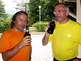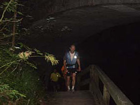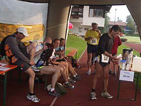 Der Abend vergeht beim Erfahrungsaustausch wie im Flug. Die anderen 100 Meilenabkürzer sind natürlich schon da und auch der Schnellste ist schon vom Duschen zurück. Der Lokalmatador Giselher Schneider hat 24 Stunden und 42 Minuten gebraucht und kümmert sich jetzt schon wieder um die Organisation. Die anderen 100 Meilen Finisher erreichen nach 29:31 (Herrmann Böhm) bzw, 30:12 Stunden ( Alois Ruhland)das Ziel und den Abschluss macht schließlich um 0.38 Uhr in der Früh Olaf. Bei den 100 Km gewann übrigens wie im Vorjahr Sigi Unterweger, der seine gute Vorjahreszeit nochmals um mehr als 45 Minuten verbesserte. Die Damensiegerin Simone Keller war mit 15:42 Std. eineinhalb Stunden länger unterwegs als Carmen Hildebrand im Vorjahr.