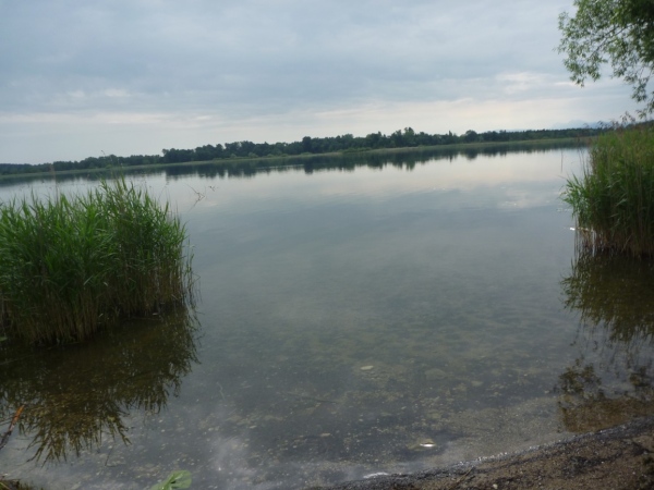 Kurzer Blick auf die Inseln des Chiemsees. Links die Fraueninsel, in der Mitte die Kraut-und-Rüben-Insel, rechts die Herreninsel. Die Nonnen der Fraueninsel bauen auf der mittleren Insel Steckrüben oder so was an und die Mönche der Herreninsel rudern dort rüber, um Kräuter, wie z. B. Liebstöckel anzubieten. Deshalb nennt man die mittlere Insel Kraut-und-Rüben-Insel. Bertrams Mücken sind tot. Ich finde das unverantwortlich, ich hatte eine persönliche Beziehung zu den Biestern.