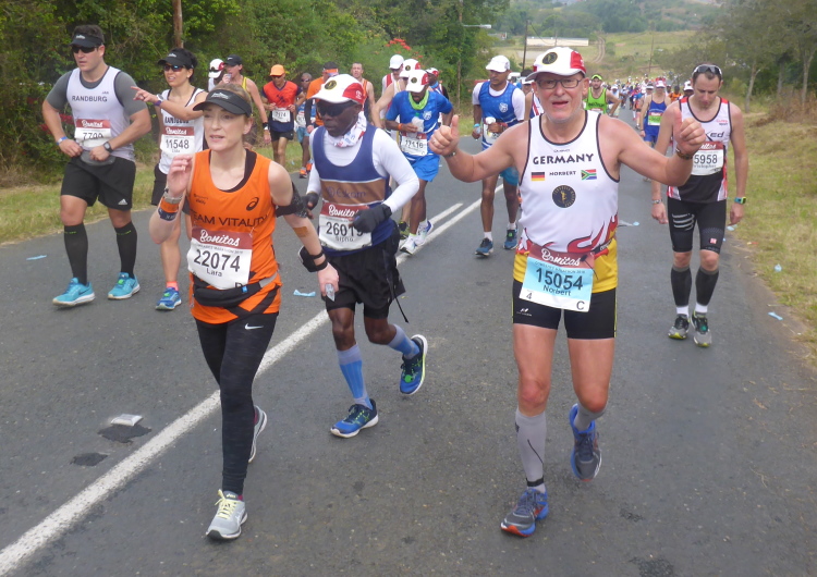 Für uns ausländische Starter hielt der Comrades in diesem Jahr einige Überraschungen bereit. Trotz Aufstockung des Starterkontingents auf 24 000 waren die Startplätze schnell vergriffen. Auch die Reiseveranstalter, die normalerweise besser zum Zuge kommen, konnten da nicht mehr helfen. Mit etwas Glück und hohem Geldeinsatz konnte Werner Otto, Reiseveranstalter unseres Vertrauens, noch letzte Startplätze organisieren. So kommen Norbert und ich doch noch zu unserer Reise nach Südafrika, sogar mit Rundumversorgung.