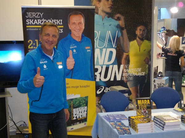 Mit dem Bus kommt man für ca. 1 € ins Zentrum. Auf dem Weg liegt auch die überschaubare Marathonmesse im Stadion Wisły, ehemals Start- und Zielbereich der Veranstaltung. Dort treffen wir auf Jerzy Skarżyński, der mit seiner 1986 in Debno erzielten Bestzeit von 2:11:42 ein bekannter polnischer Marathonläufer ist und ähnlich wie hierzulande Herbert Steffny dicke Laufratgeber verkauft.